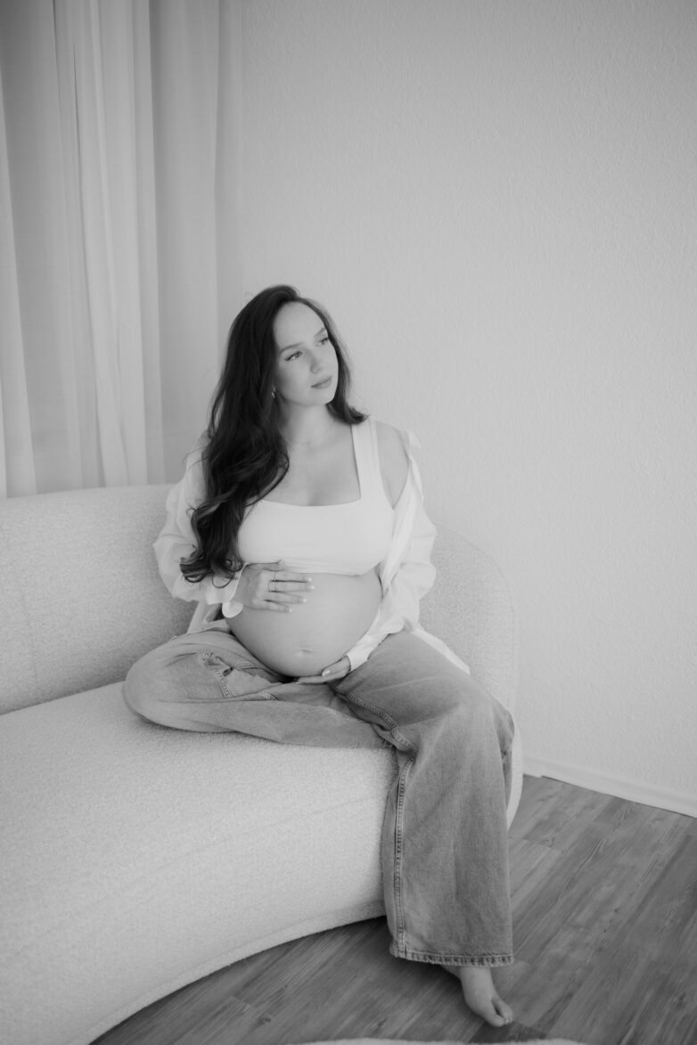 Der Fokus liegt ganz auf dir, deinem Babybauch und diesem einzigartigen Moment – ohne Ablenkung, ohne künstliche Requisiten, dafür mit ehrlicher Nähe, weichen Farben und einer entspannten Atmosphäre.